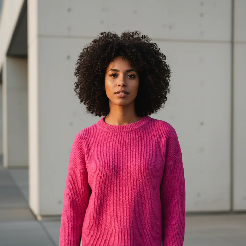 Le secret d’un look réussi réside dans les associations. Pour un style naturel, associez un pull rose poudré à des tons neutres comme le beige, le blanc ou le gris. Pour une allure plus affirmée, jouez avec les contrastes : un pull fushia accompagné d’un jean brut ou d’un pantalon clair crée une harmonie dynamique et moderne.